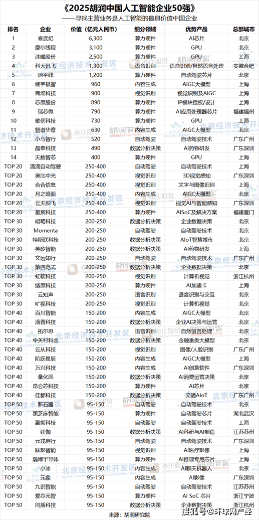 究院正在京发布《2025胡润中国人工智能企业50强